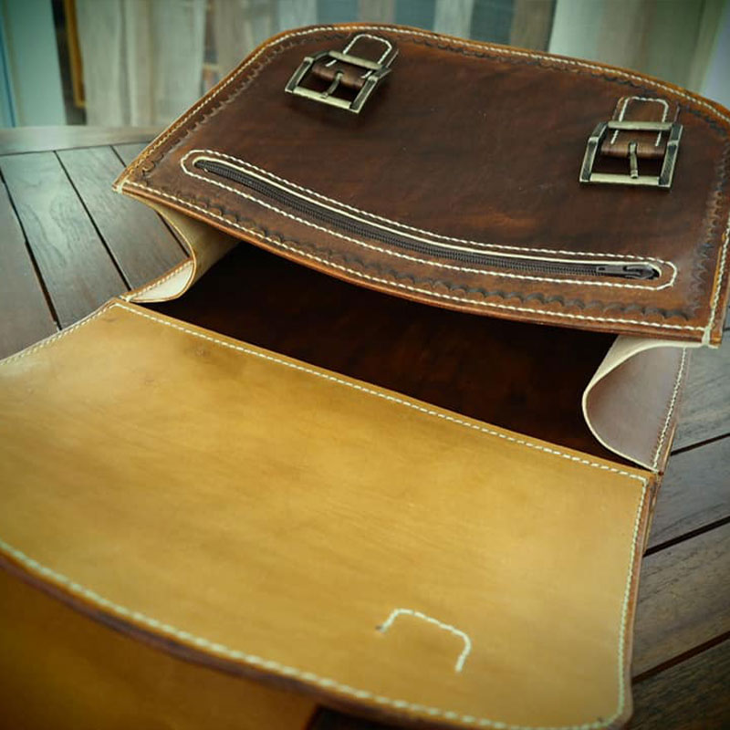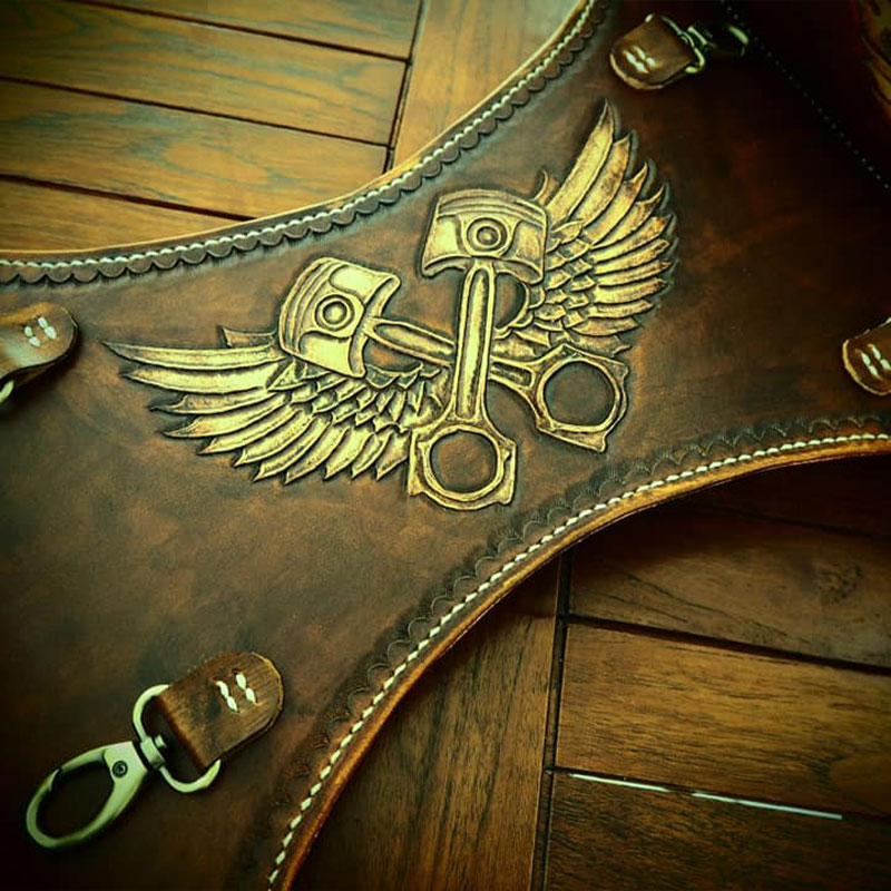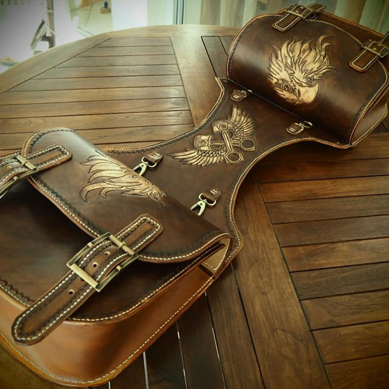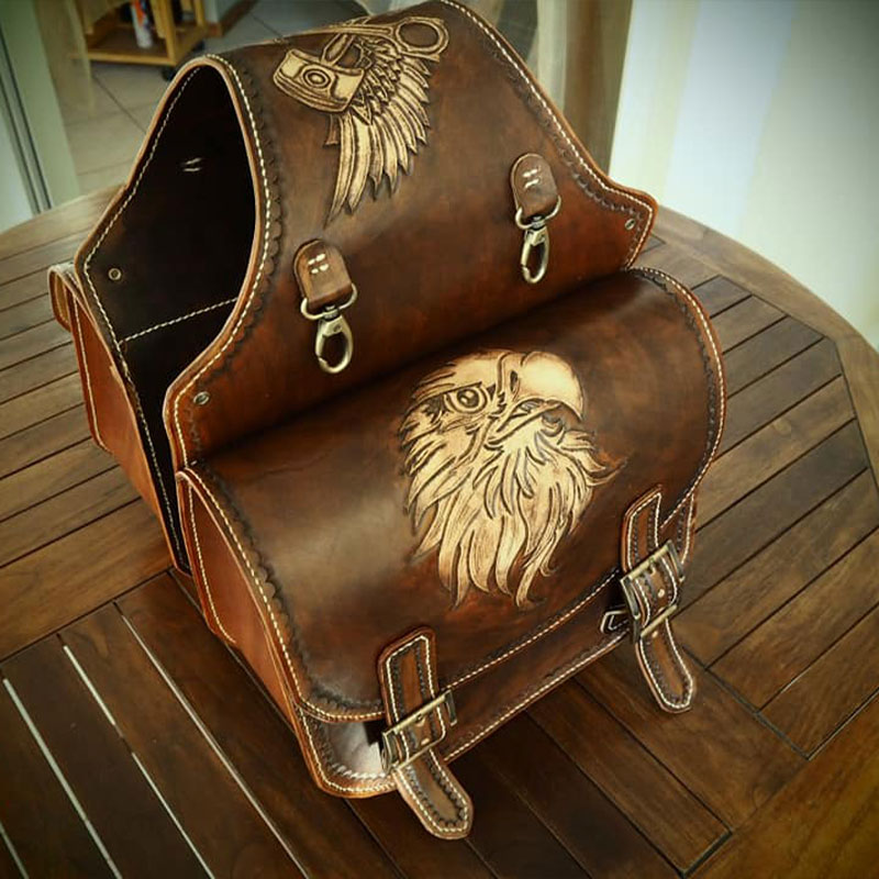 Δερμάτινη χειροποίητη σκαλιστή Τσάντα Μοτοσυκλέτας (Eagle Head), κατασκευασμένη όλη στο χέρι.