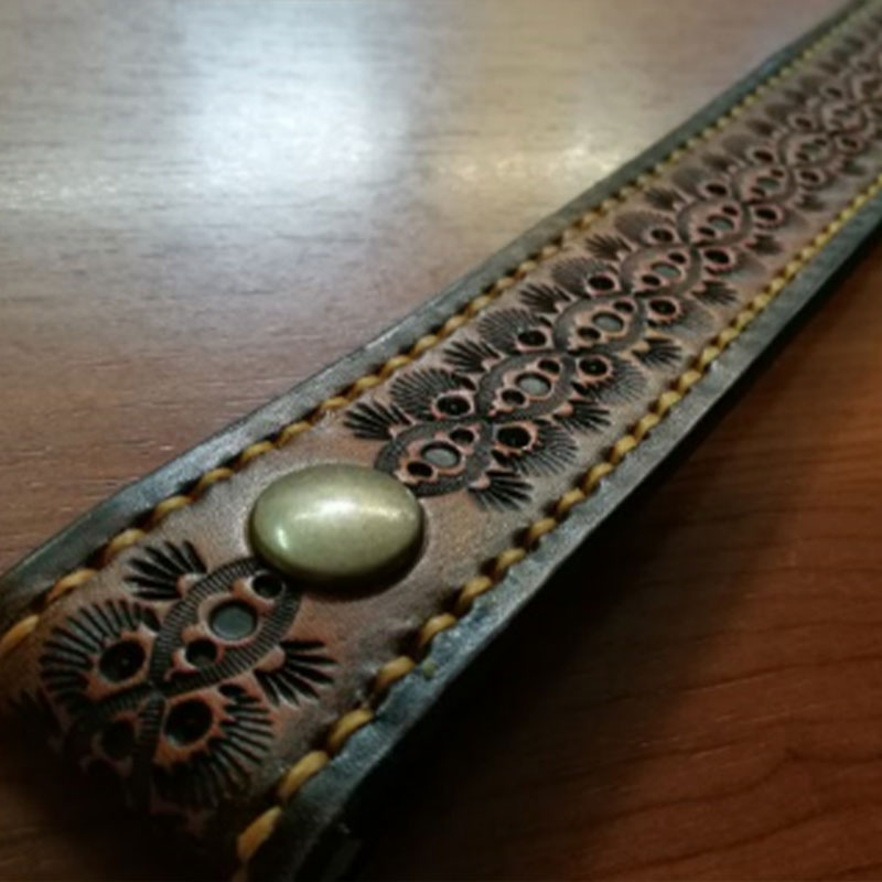 Δερμάτινη χειροποίητη σκαλιστή ζώνη, κατασκευασμένη όλη στο χέρι.
