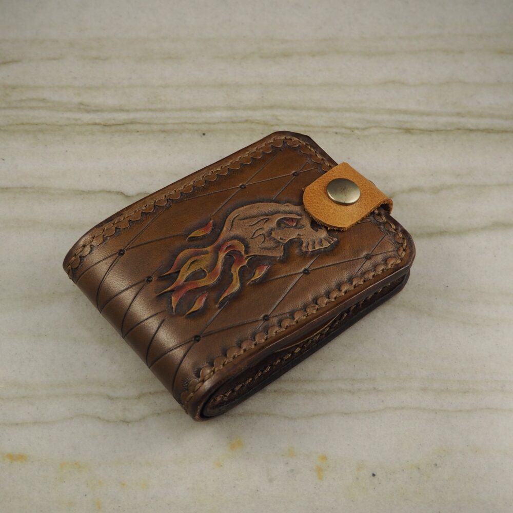 Δερμάτινο χειροποίητο σκαλιστό πορτοφόλι half-type, κατασκευασμένο όλο στο χέρι.