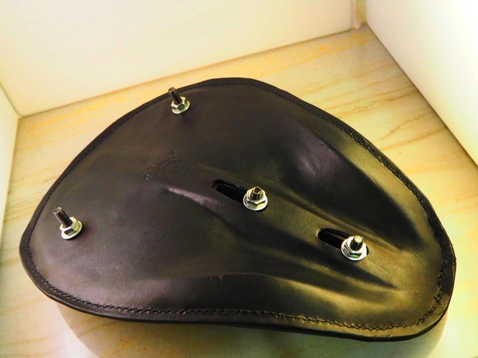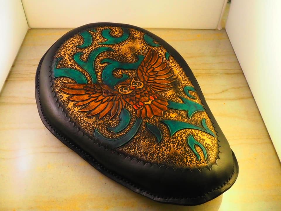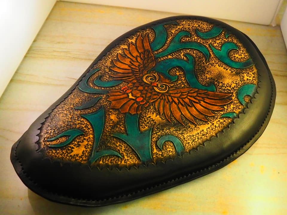 Δερμάτινη χειροποίητη σκαλιστή σέλα μοτοσυκλέτας (Awl), κατασκευασμένη όλη στο χέρι.
