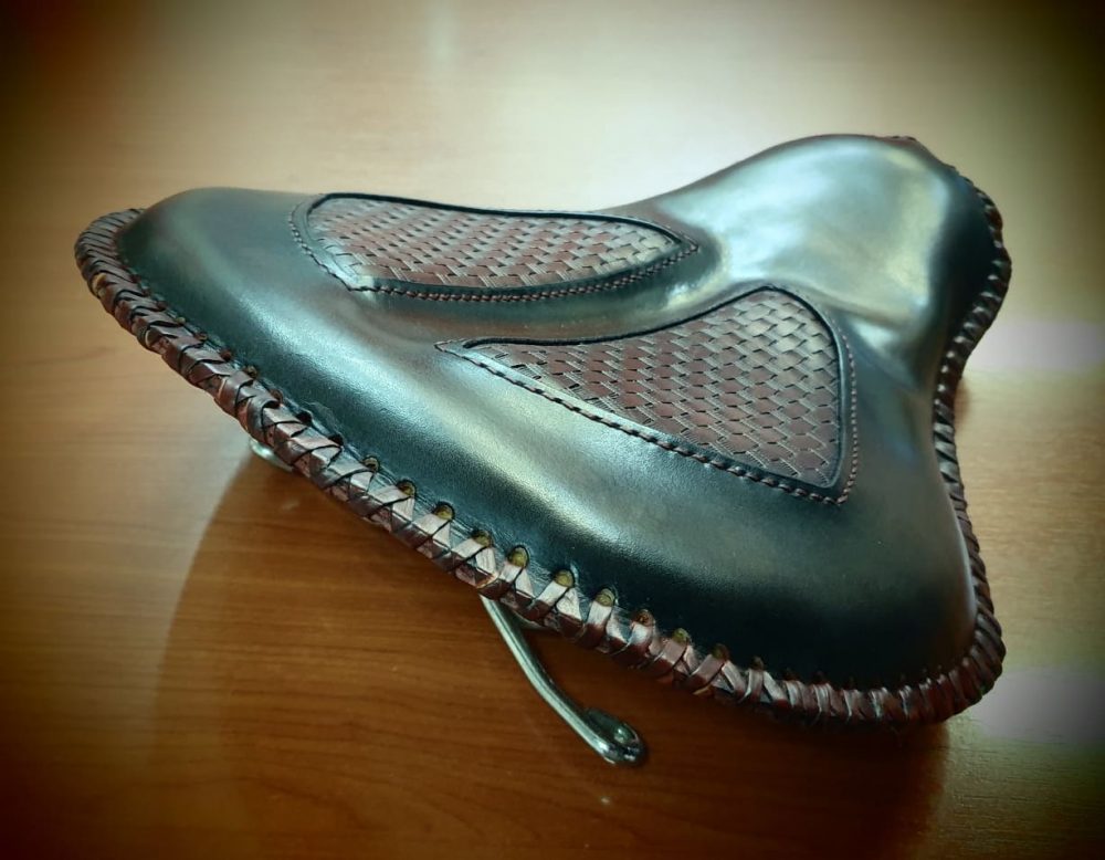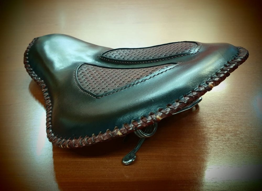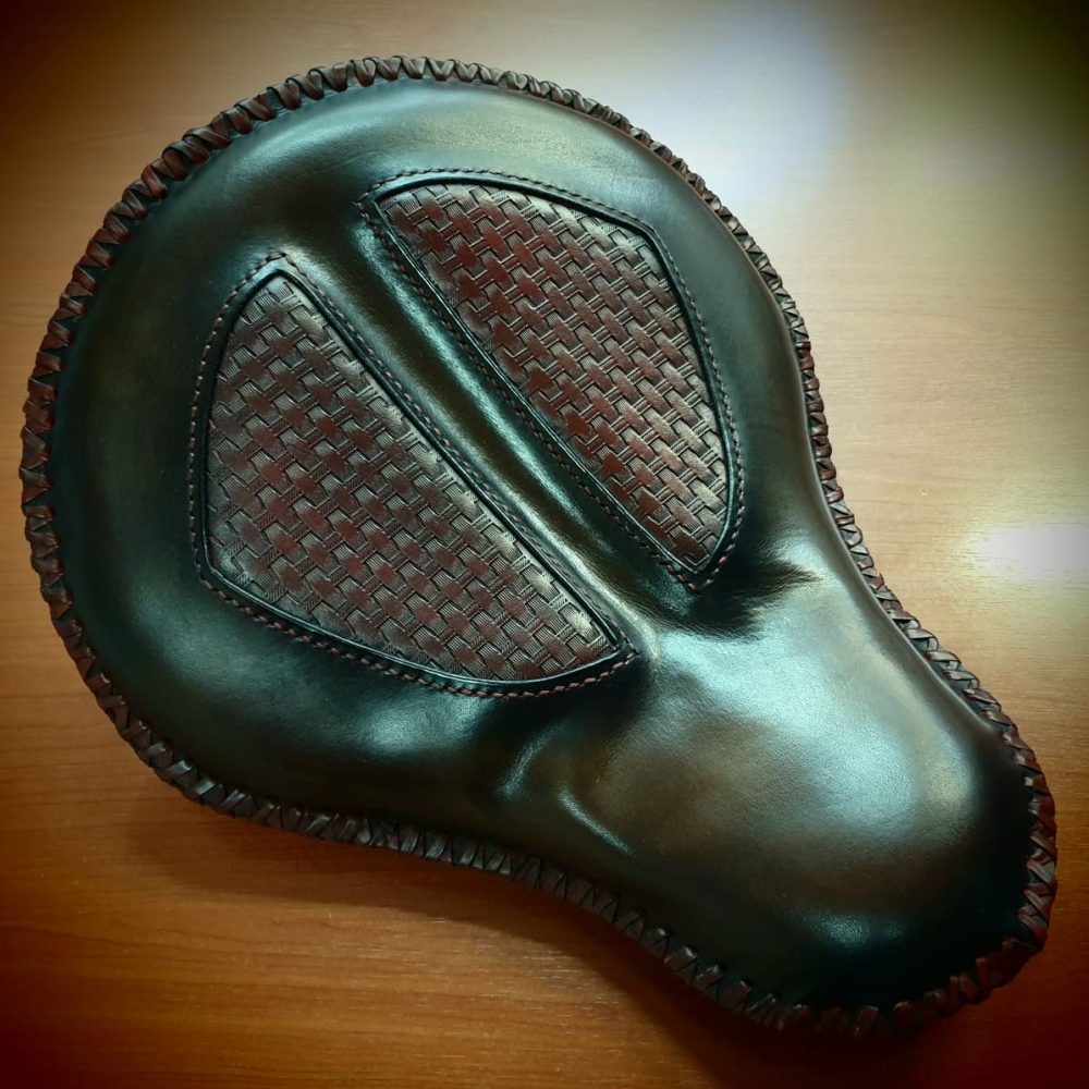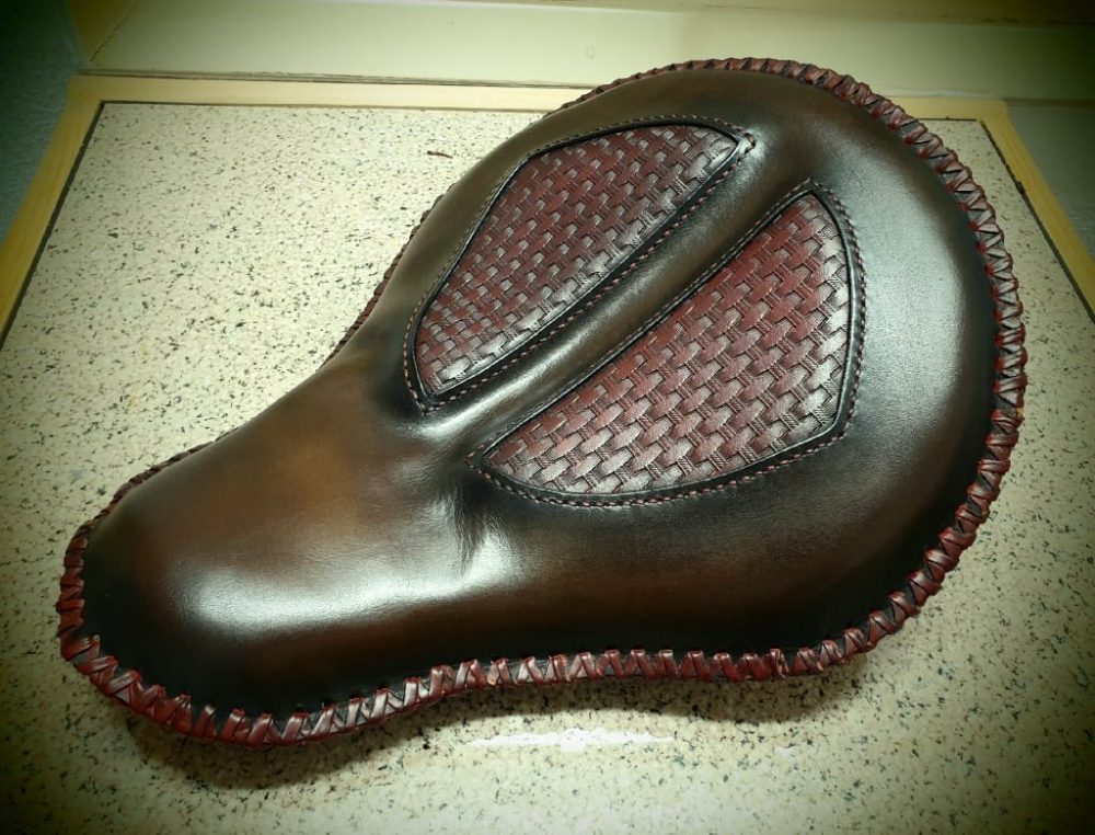 Δερμάτινη χειροποίητη σκαλιστή σέλα μοτοσυκλέτας (Cherry Gel), κατασκευασμένη όλη στο χέρι.