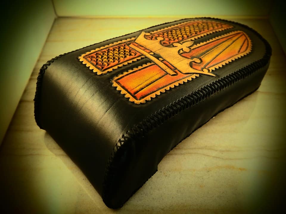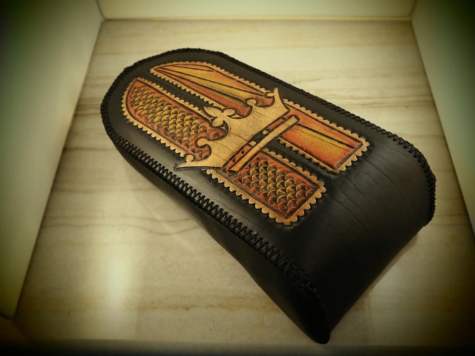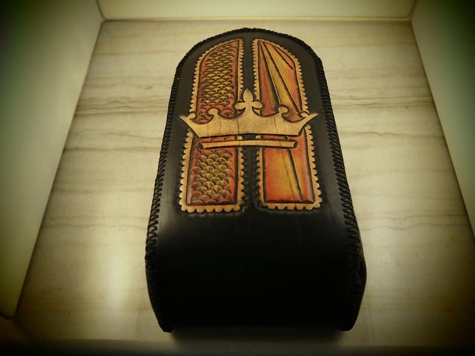 Δερμάτινη χειροποίητη σκαλιστή σέλα μοτοσυκλέτας (Crown), κατασκευασμένη όλη στο χέρι.