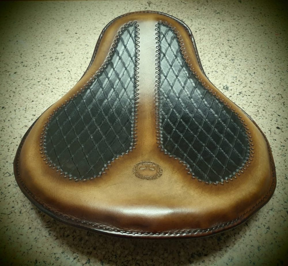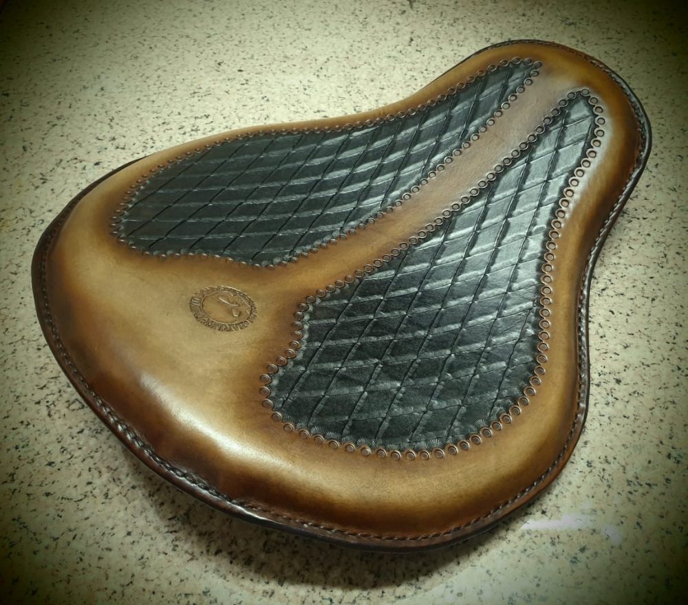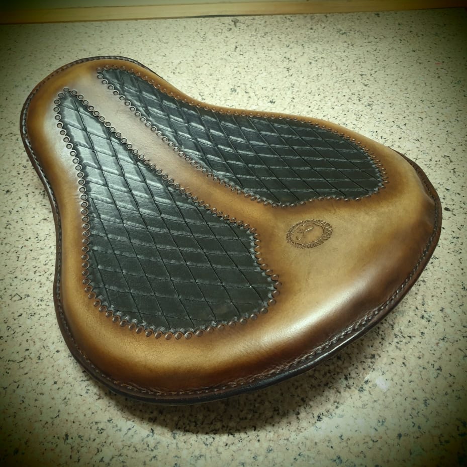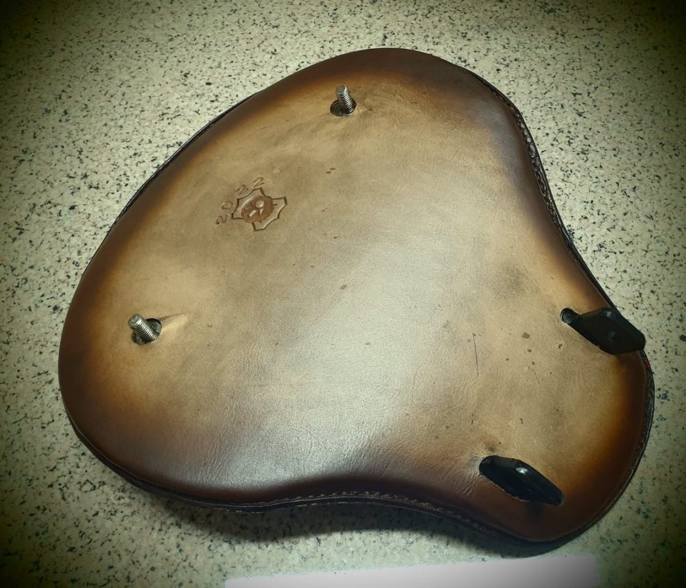 Δερμάτινη χειροποίητη σκαλιστή σέλα μοτοσυκλέτας (solo z), κατασκευασμένη όλη στο χέρι.