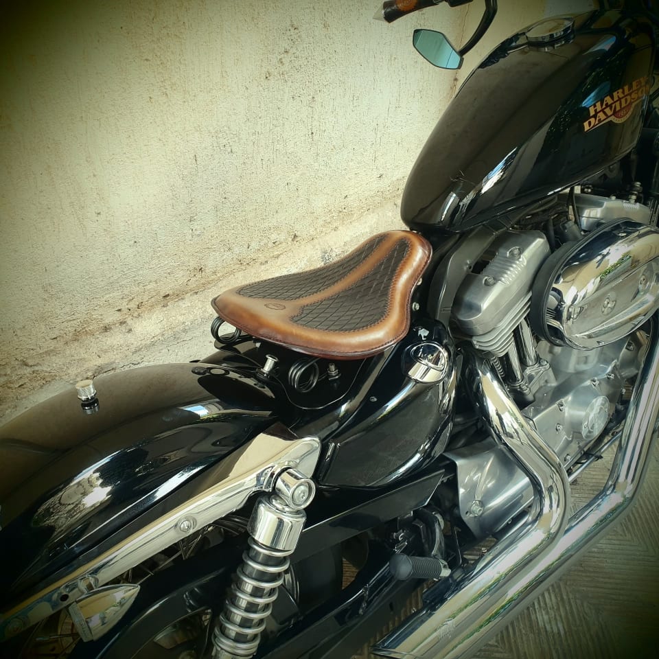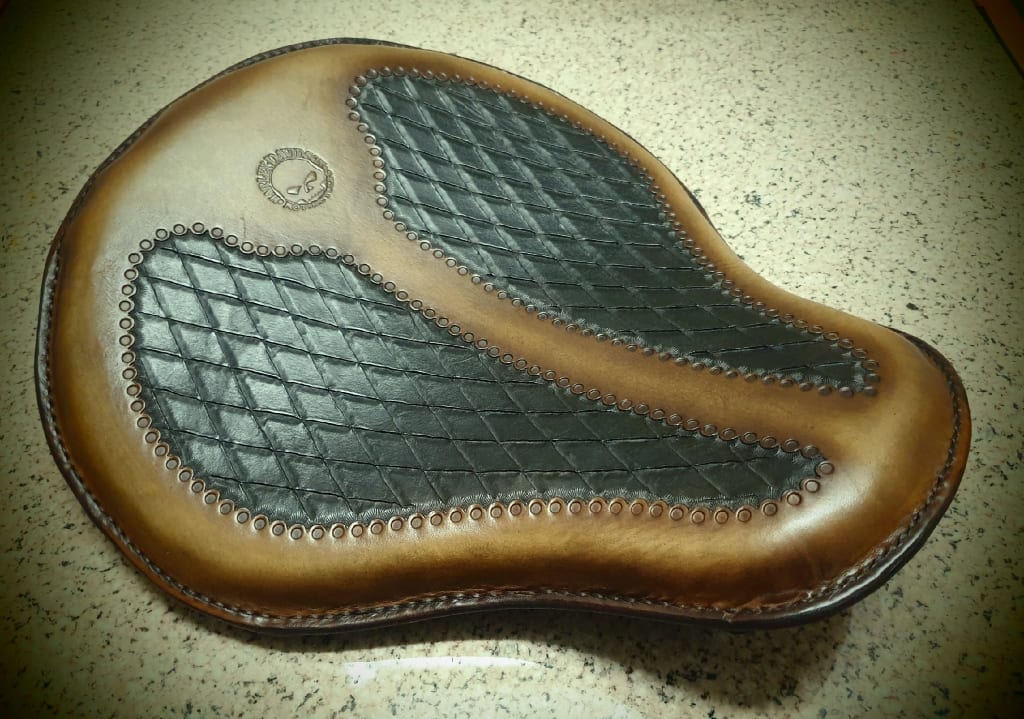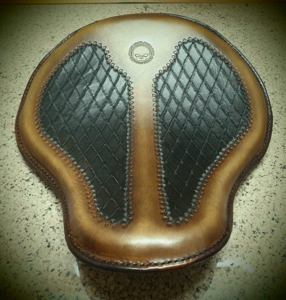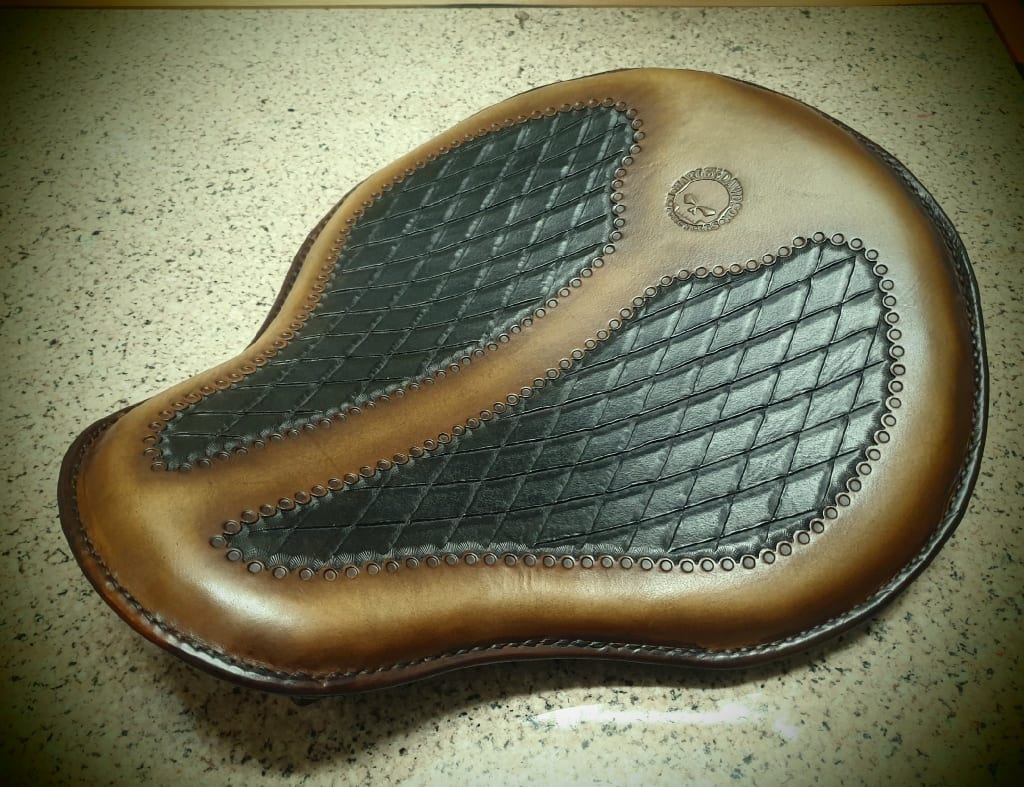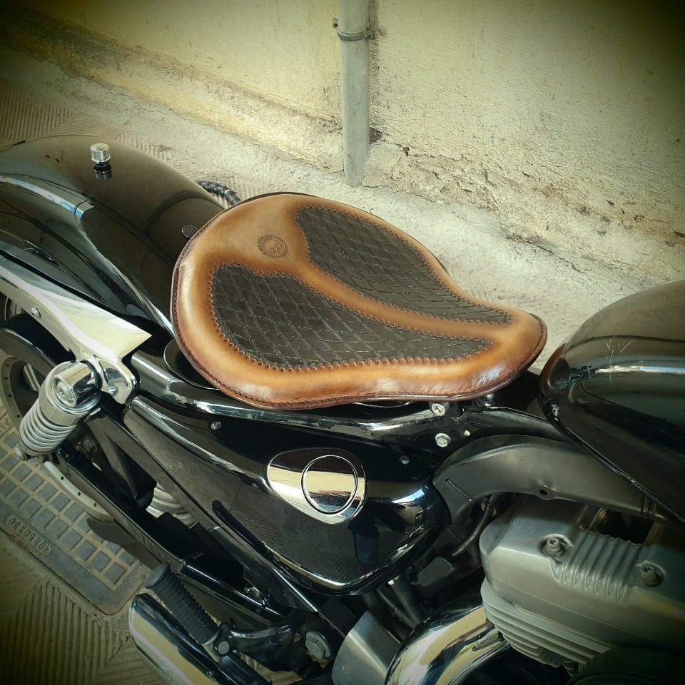 Δερμάτινη χειροποίητη σκαλιστή σέλα μοτοσυκλέτας (solo z), κατασκευασμένη όλη στο χέρι.