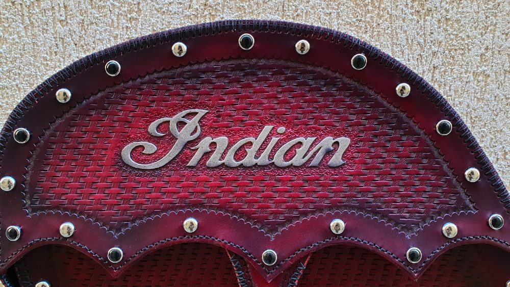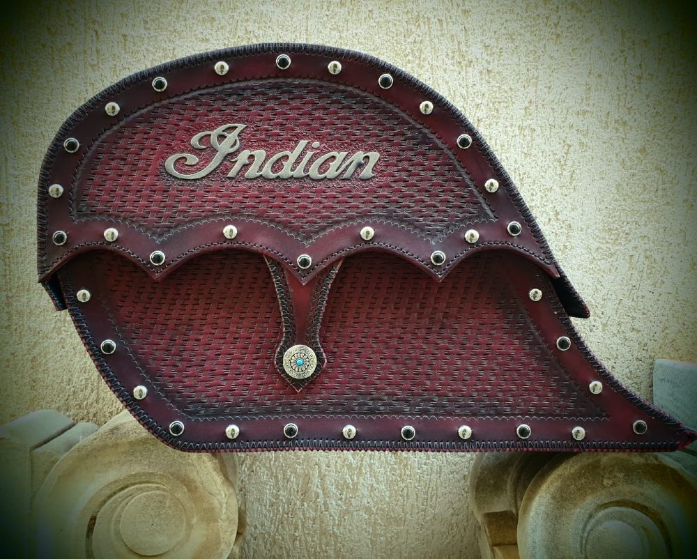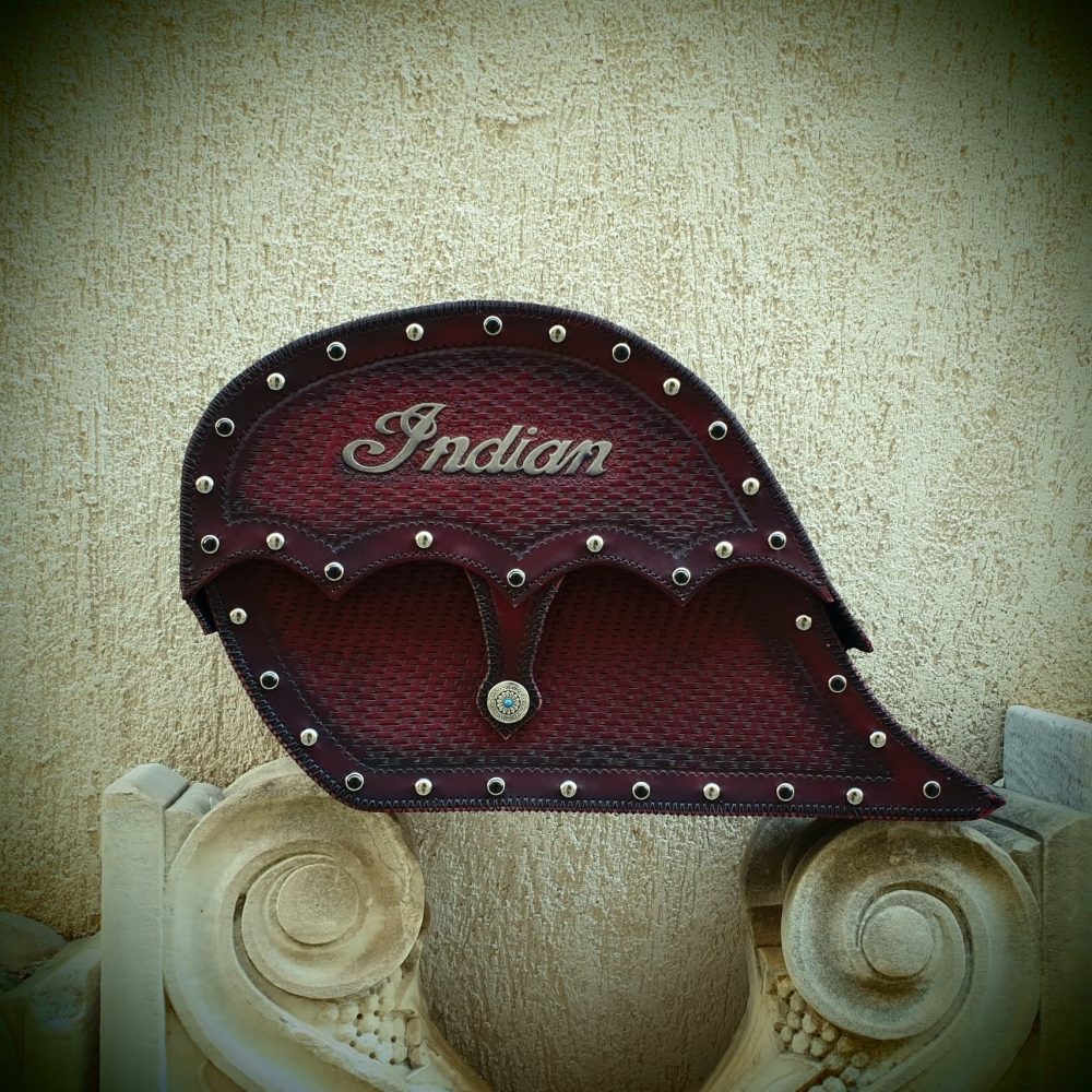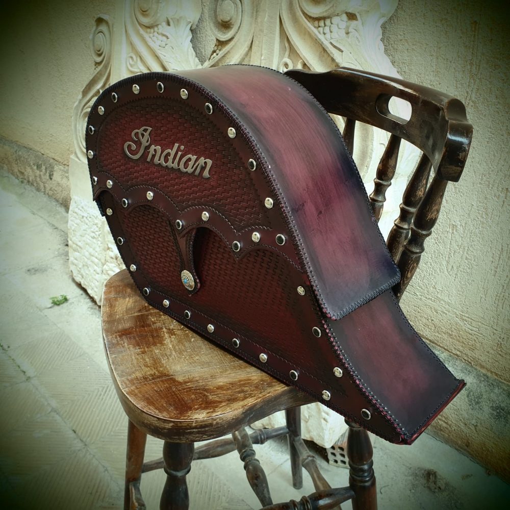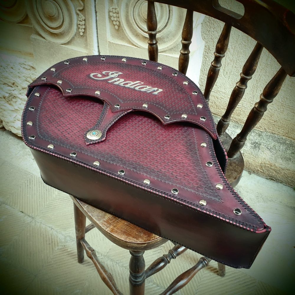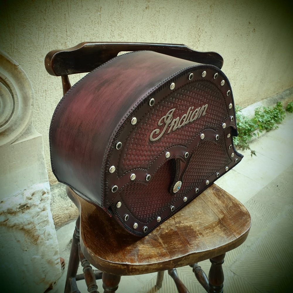 Δερμάτινη χειροποίητη σκαλιστή Τσάντα Μοτοσυκλέτας (cognac side), κατασκευασμένη όλη στο χέρι.